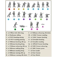 The unit is also armed with a pair of short range anti-tank weapons, usually the 89mm LRAC (Lance-Roquettes AntiChar de 89 mm modèle F1) reusable rocket launcher, but some units are issued with the new disposable APILAS (Armor-Piercing Infantry Light Arm System) portable one-shot 112mm recoilless anti-tank weapon. THIS PRODUCT CONTAINS: Metal Infantry Figures 1x Formation Commander FAMAS Assault Rifle Team 5x FAMAS Teams with AC-58 Anti-tank Grenades 2x LRAC 89mm Anti-tank Teams 1x APILAS Anti-tank Team 2x Eryx Missile Teams --- These miniatures are supplied unassembled and unpainted