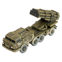 The BM-27 Hurricane (Uragan) began its service with the Soviet Army in the late 1970s, and was its first modern spin and fin stabilized heavy multiple rocket launcher. It launches 220mm rockets from 16 launch tubes mounted on the rear of a ZIL-135 8x8 truck. The BM-27 can use HE-FRAG, chemical, explosive or scatterable mine (PTM-3 orPFM-1) submunition equipped rockets. THIS PRODUCT CONTAINS: 3x resin and metal BM-27 Hurricane Rocket Launchers --- These miniatures are supplied unassembled and unpainted