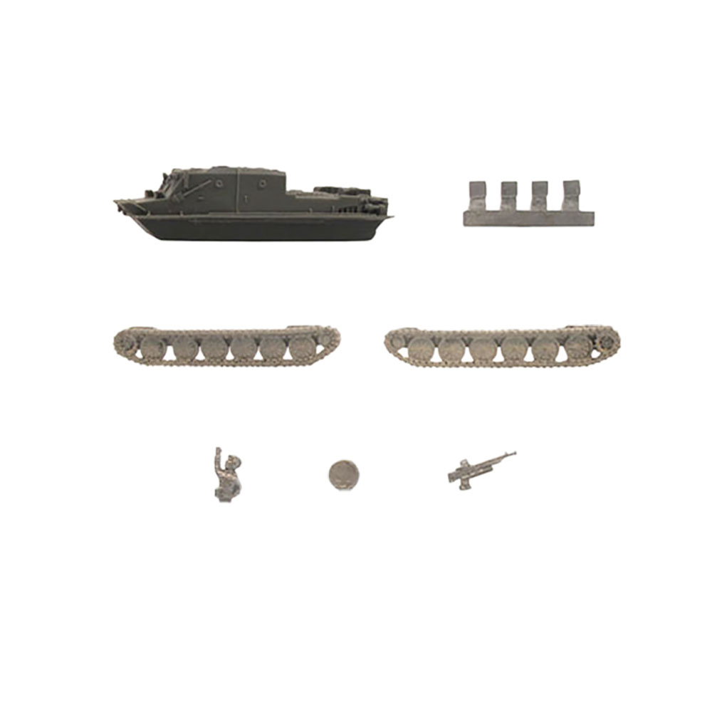 Team Yankee: Soviet: BTR-50PK The BTR-50 (Bronetransporter 1950, or armoured transporter 1950) is a tracked amphibious armoured personnel carrier (APC) based on the PT-76 light tank chassis. It weighs 15 tons and is diesel engine powered tracked vehicle with two crew and space for up to 20 passengers. It usually mounts a 7.62mm machine-gun. The BTR-50 entered service in 1954 and until 1966 was the Soviet army’s main infantry fighting vehicle. BTR-50 APCs transport their infantry into battle, then pro-vide supporting fire with their machine-guns THIS PRODUCT CONTAINS: 1x resin and metal BTR-50PK Armoured Personnel Carrier These miniatures are supplied unassembled and unpainted