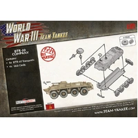 BTR-60 Company Transport Platoon (Plastic) Team Yankee Package contains: 5 x BTR-60 Transports 1 x Tank Commander sprue 1 x Decal Sheet 5 x Unit Cards Product info: The BTR-60 was developed in the 1950's a replacement for older wheeled armoured personnel carriers and was first reveled in 1961. BTR stands for Bronetransporter (БТР, Бронетранспортер, literally "armoured transporter") Product Code: TSBX14 Models supplied unpainted and require assembly. Scenery, glue, and paint not included.