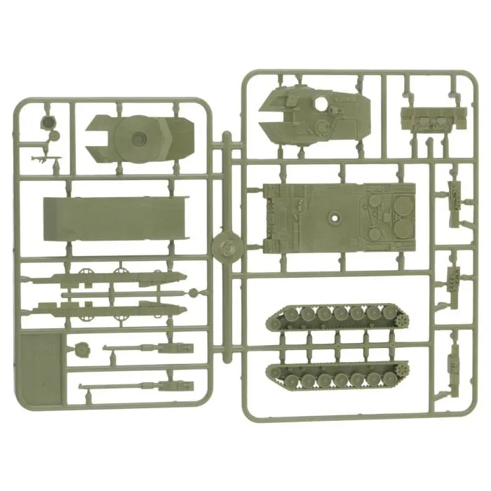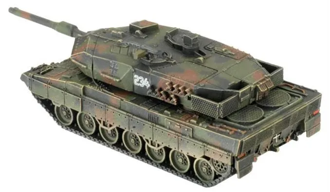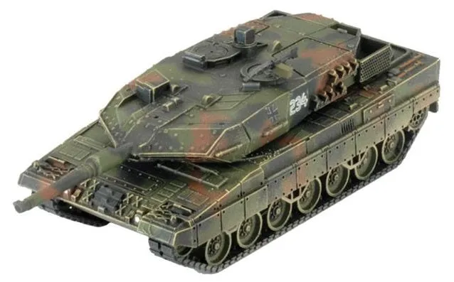 From the beginning of its production and introduction into service in 1979 the Leopard 2 main battle tank has undergone incremental improvements. A key component of this program was the improvement of its armour. Most Leopard 2s in service in 1985 were Leopard 2A1 to 2A3 (the first four production batches), all with various minor changes during production, but with the same basic armour package, which consisted of a combination of steel plates of different hardness, as well as elastic and other non-metallic materials. The first real improvement in the Leopard 2s armour came about with the Leopard 2A4 with the introduction of a new revised turret that included a tungsten/titanium armour mix for improved ballistics protection. This fifth production batch model also introduced an automated fire and explosion suppression system and an all-digital fire control system able to handle new ammunition types. The new Leopard 2A4 began production in 1984 and plans were made to bring all the previous models up to the same standard. Further armour improvements were made from the sixth production batch. While the production of the Leopard 2A4 went on, a development team had already begun investigating improving the Leopard 2 further. The West Germans realised further improvements had to be made to keep the Leopard 2 at the peak of armoured performance. Initially known as Leopard 2 Improved, but later designated Leopard 2A5, the new model introduced wedge-shaped, spaced add-on armour to the turret front and the frontal area of the hull sides. The new spaced armour modules are designed to defeat the jet of a hollow charge or high-explosive anti-tank round prior to it reaching the base armour. They are also designed to cause kinetic-energy penetrators to change direction, eroding their penetrating power in the process. Despite its angled overhang, the new armour did not form a shot-trap, since it did not deflect the penetrators outwards to hit the hull or turret ring. Add-on modular armour panels were also fitted to the hull front. When damaged these armour modules could be easily replaced in the field. New side-skirts were also fitted and the interior of the tank was lined to prevent spalling. These changes required the gun mantlet to be redesigned to accept the new armour, and the fire control system sensors and the commander’s sight had to be moved to accommodate the changes. Overall the Leopard 2A5 had significant improvements to its armour effectiveness, as well as an improved sighting system incorporating a commander’s independent thermal channel for increased situational awareness and target acquisition. The turret controls are all-electric, improving gunnery, performance and reliability, in addition to providing major weight savings. The Leopard 2A5s increased protection meant it could assert itself even against the numerically superior Warsaw Pact aggressor. THIS PRODUCT CONTAINS: 5x Leopard 2A5 Tanks --- These miniatures are supplied unassembled and unpainted
