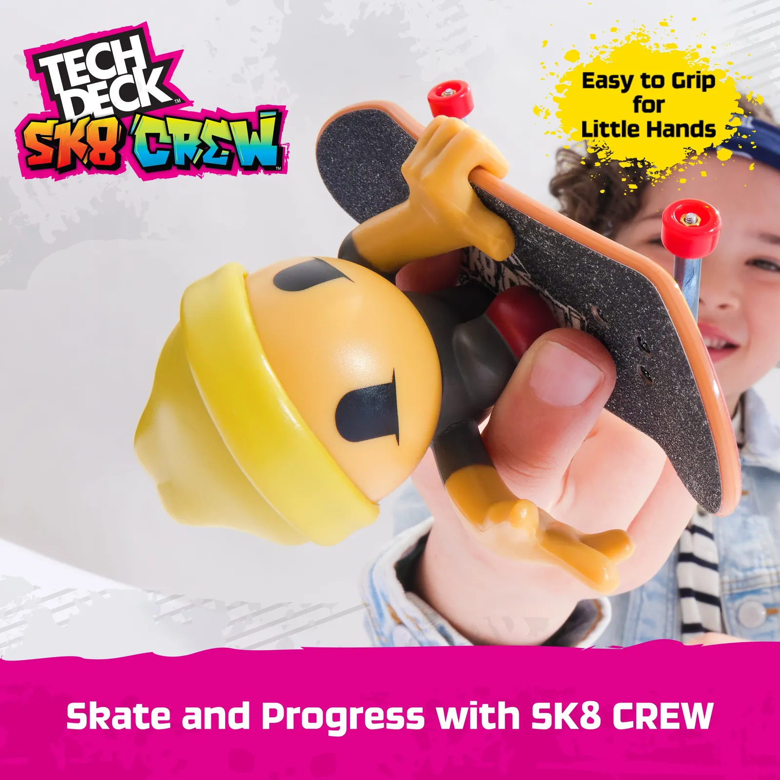 The SK8 Crew Fun Box opens up to reveal a full skate park complete with a half bowl, ramps, rails and more! Catch air and perform cool tricks with friends with the 4 included fingerboards. Snap any of the 5 SK8 Crew members onto the skateboard deck and start practicing the right techniques. Packing up is easy with the SK8 Crew Fun Box. Place your fingerboards and SK8 Crew members inside and fold the box back up for easy storage, and take your skate park anywhere. Collect all 15 Sk8 Crew figures and the Ultra SK8 Bus to level up your collection, (sold separately). There are a ton of Decks, toy figures & playsets to collect! Ride, flip, and grind with Tech Deck fingerboards and BMX from real skate companies! Tech Deck mini skateboards for fingers and ramp sets make the perfect gift for girls toys age 6-8 who love small toys, cool toys, hot toys. Are you looking for 3 year old boy toys consider Tech Decks as an alternative to toy cars as a girls and boys toys age 6-8 item. Bring the Tech Deck SK8 Crew Fun Box home today and learn to fingerboard.