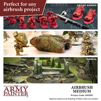 The Army Painter has developed The Warpaints: Airbrush Medium to enable our superior quality Warpaints to be used with an airbrush. This Airbrush Medium which comes in a large 100ml bottle is highly versatile, and any high-quality acrylic paint will benefit from it. A real quality of this product is that the Airbrush Medium not only works as a thinner for acrylic paints - but also as a flow improver!