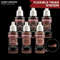 The Warpaints Fanatic: Oak Brown is a black reddish brown that matches the Warpaint Air and Colour Primer of the same name. It’s the darkest tone from the “Ruddy Browns” Flexible Colour Triad and its Practical Colour Name is “Very Dark Reddish Brown”.