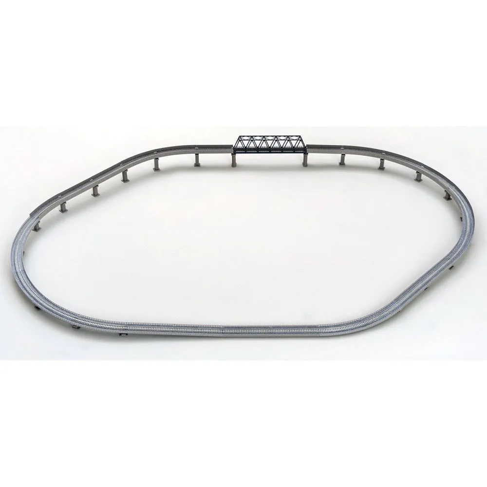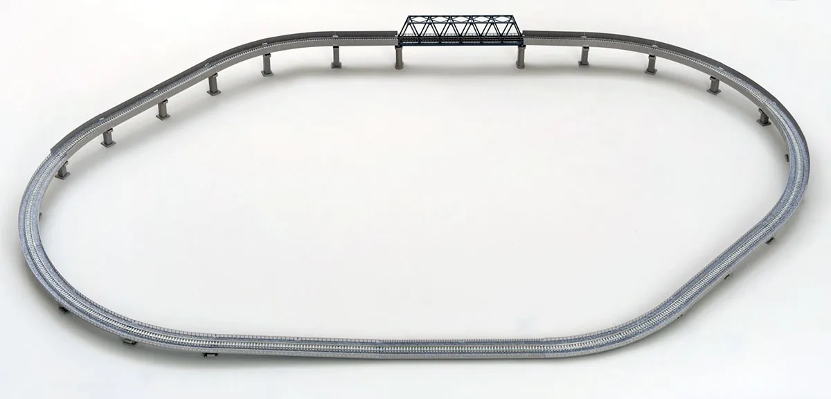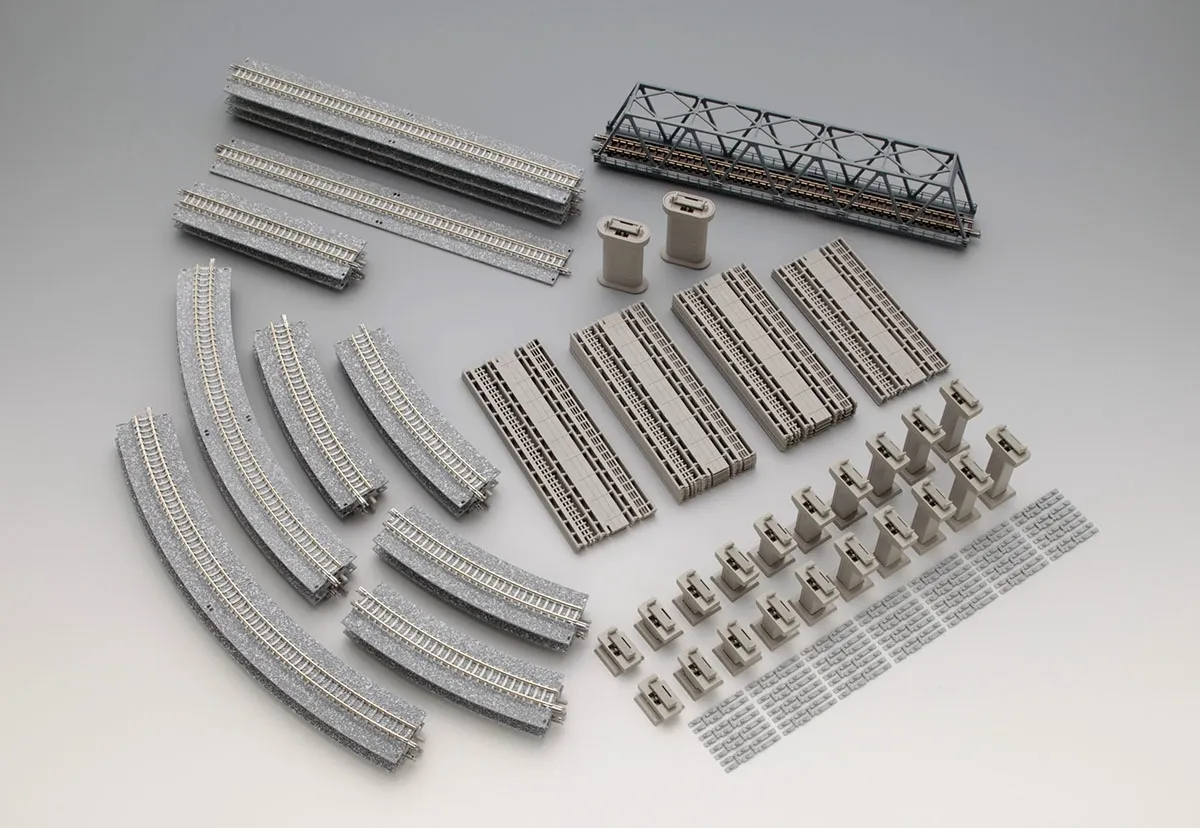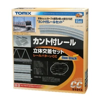 This is a single-track, multi-level crossing development rail set that allows you to play with vehicles tilting on curves. Features - Uses wide PC rails - Can be combined with the basic set of canted rails to create a single-track multi-level intersection layout Contents Rails - Wide PC rail S140-WP (F) - Wide PC rail S280-WP (F) - Wide PC curved rail C354-45-WP (F) - Wide PC curved rail C391-45-WP (F) - Wide PC approach rail CR354-22.5-WP (F) - Wide PC approach rail CL354-22.5-WP (F) - Wide PC approach rail CR391-22.5-WP (F) - Wide PC approach rail CL391-22.5-WP (F) Accessories - PC gradient pier (set of 10) - Single-wire truss iron bridge set (F) (blue) (PC pier) - Wall for wide rail S140 - Wall for wide rail C354 inside and C317 outside - Wall for wide rail C391 inside and C354 outside - Wall for wide rail C428 inside and C391 outside - Single-wire pier base for wide rail S140 - Single-track pier base for wide rail C354-22.5 - Single-track pier base for wide rail C391-22.5 - Wide rail joint Powe r unit and feeder are not included Single-track pier base is already attached to the rail