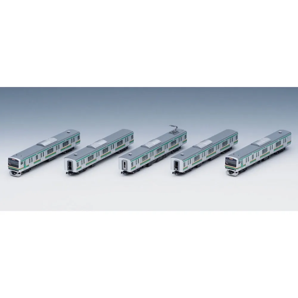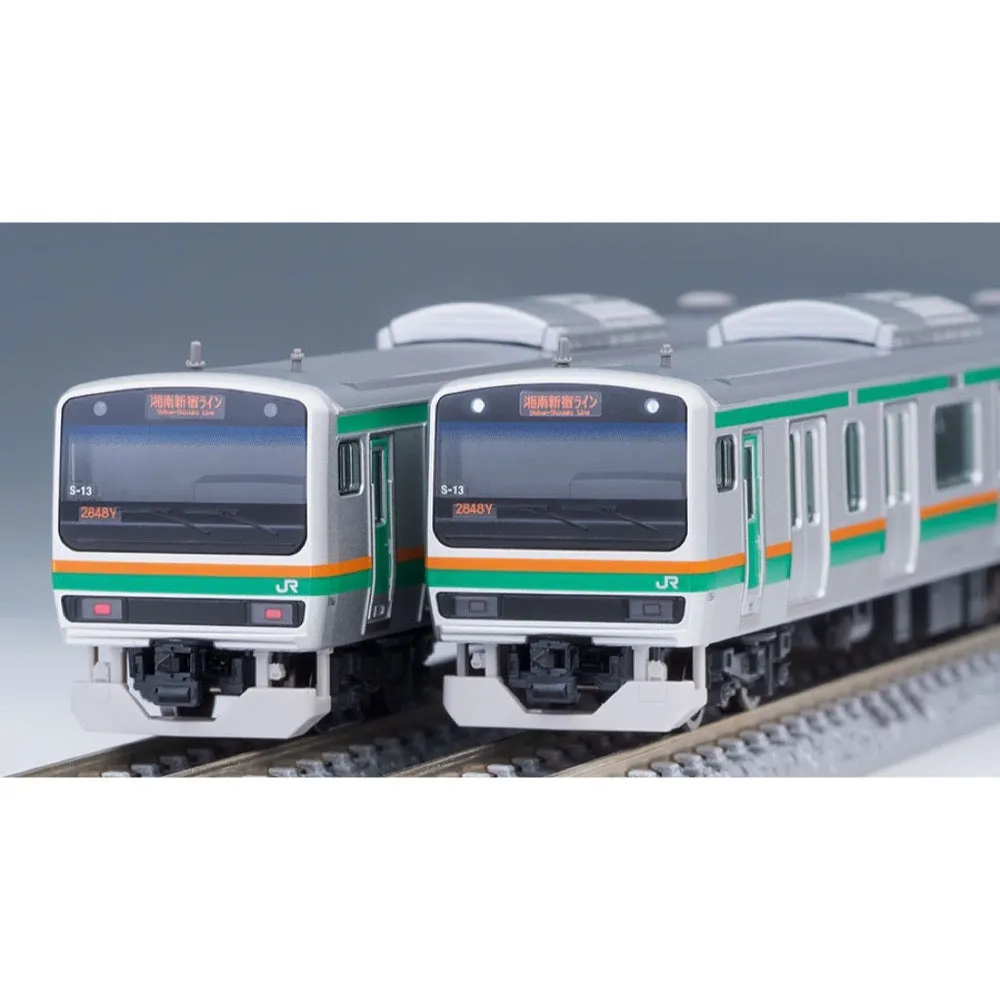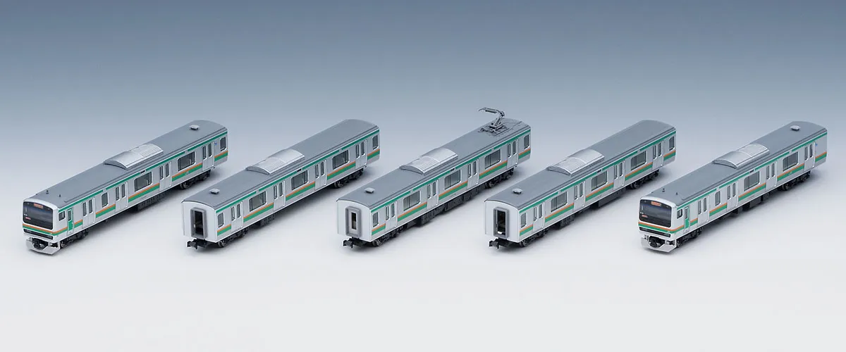 The E231 series is a commuter and suburban train developed by JR East and is in operation on various DC sections in the Tokyo metropolitan area. The E231 series, which belongs to the Kozu Rolling Stock Center, began commercial operation in 2004 with the aim of replacing the 113 series. The basic 10-car formation has two double-decker green cars attached. Since its introduction, it has been in operation over a wide area from the northern Kanto area to the southern Kanto area via the Shonan-Shinjuku Line. It is also in operation with the E233 series on the Ueno-Tokyo Line, which opened in 2015. From 2020, VVVF inverter equipment, SIV power supply equipment, etc. have been gradually updated, and the appearance of some of the underfloor equipment has changed. Features - Reproduces the updated E231-1000 series cars belonging to the Kozu Rolling Stock Center - The underfloor of the Moha E231 and Moha E230 models reproduces the appearance with updated equipment - The body of the Salo E231 model has been redesigned and reproduced with new production - The bogie of the Salo E231 model reproduces the appearance with the yaw damper removed - This product (cars 1, 5, 9, and 10) can be combined with product number 98517 to reproduce the basic 10-car formation - The side exterior speaker preparation area is expressed in three dimensions with sculpture - The body is reproduced in two types of silver - Reinforced skirt is attached - The front display area has the "Shonan-Shinjuku Line" mark on the windshield Printed - JR mark, green car mark, and car number are printed - Car number can be changed using the transfer sheet included with each set of product numbers 98516 and 98517 - Side green glass is reproduced - Head and tail lights and front display are equipped with constant lighting boards and ON-OFF switch - Head and tail lights and front display are lit by white LEDs - The driver's side of the Kuha E231 type is equipped with a TN coupler (SP) - The driver's side of the Kuha E230 type is equipped with a dummy coupler - Uses power with flywheel - Uses a new current collection system and black wheels - Uses an M-13 motor Vehicles - Kuha E231-8500 - Moha E231-3500(M) - Salo E231-1000 - Kuha E230-8000 Accessories - Runner parts: antenna, signal flare - Runner parts: lightning arrester