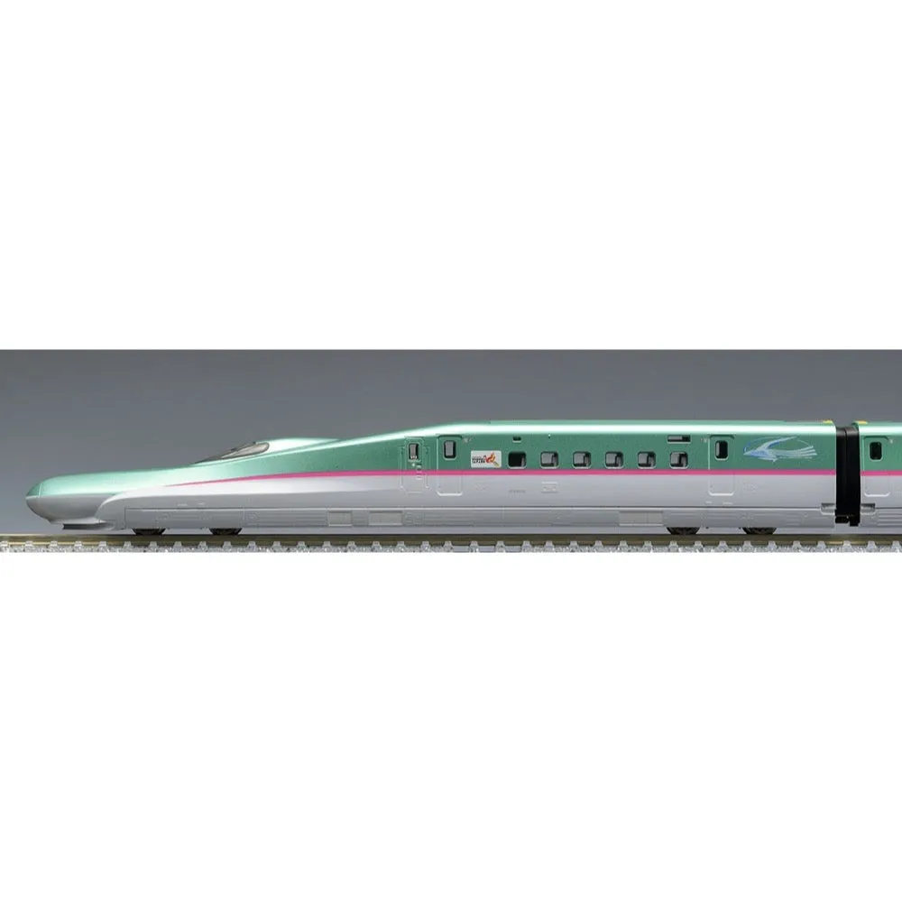 The E5 series, which was introduced as "Hayabusa" in 2011, began coupled operation with the E6 series in 2013, and as of 2022 operates at a maximum speed of 320 km/h. In recent years, baggage storage areas have been added inside the cars to accommodate larger baggage, so some of the windows are now blocked off. Features - The structure of the light-blocking case has been changed - In accordance with the luggage storage areas added to cars 1 to 9, some of the windows in cars 1 to 8 have been blocked off - The anti-slip material on the roof has been reproduced with gray printing - The car number of the U42 formation has been printed - The car number can be changed using the transfer sheet included in the add-on set - A full 10-car formation can be reproduced by combining this product (cars 1, 6, 7, and 10) with product numbers 98498 and 98499 - Equipped with movable hood - Equipped with movable pantograph - Uses hook and U-shaped conductive couplers - The driver's side of E514, which connects to the E6 series and others, is equipped with a TN coupler - The movable hood reproduces the black outer hood adopted from the U28 formation onwards - The "Treasureland" sticker attached to the side of the front of cars 1 and 10 "TOHOKU-JAPAN" logo is reproduced by printing. - Hayabusa logo, Gran Class mark, and car number are printed. - Headlights and taillights are equipped with a constant lighting board. - Headlights are lit by white LEDs, taillights by red LEDs. - E514 type has head and taillight ON-OFF switch. - Uses flywheel-equipped power source. - Uses new current collection system and silver wheels. - Uses M-13 motor. Contents Vehicles - E523-42 - E526-342 - E525-142(M) - E514-42 Accessories - Parts: Powered bogie mounting auxiliary rod