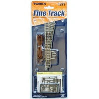 SKU: TMX01271 | Brand: Tomix | Product: Tomix N Electric Turnout Track Right Hand 21-5/16" 541mm Radius, 15° Right-hand electric switch track (N-PR541-15 (F)) measuring 140mm in length with 541mm radius and 15° branch angle. Features complete selection switching with two built-in contacts for independent directional control. Compatible with Tomix N power units and point control boxes. Rail joining uses improved joiners with claw connections. Includes dummy point motor runner, spring point sign, manual switching device, and sign sticker. Supports double-track configurations with 37mm branch spacing and 280mm one-way spacing via two-wire installation. Electrical isolation achieved through optional insulated joiner replacement.