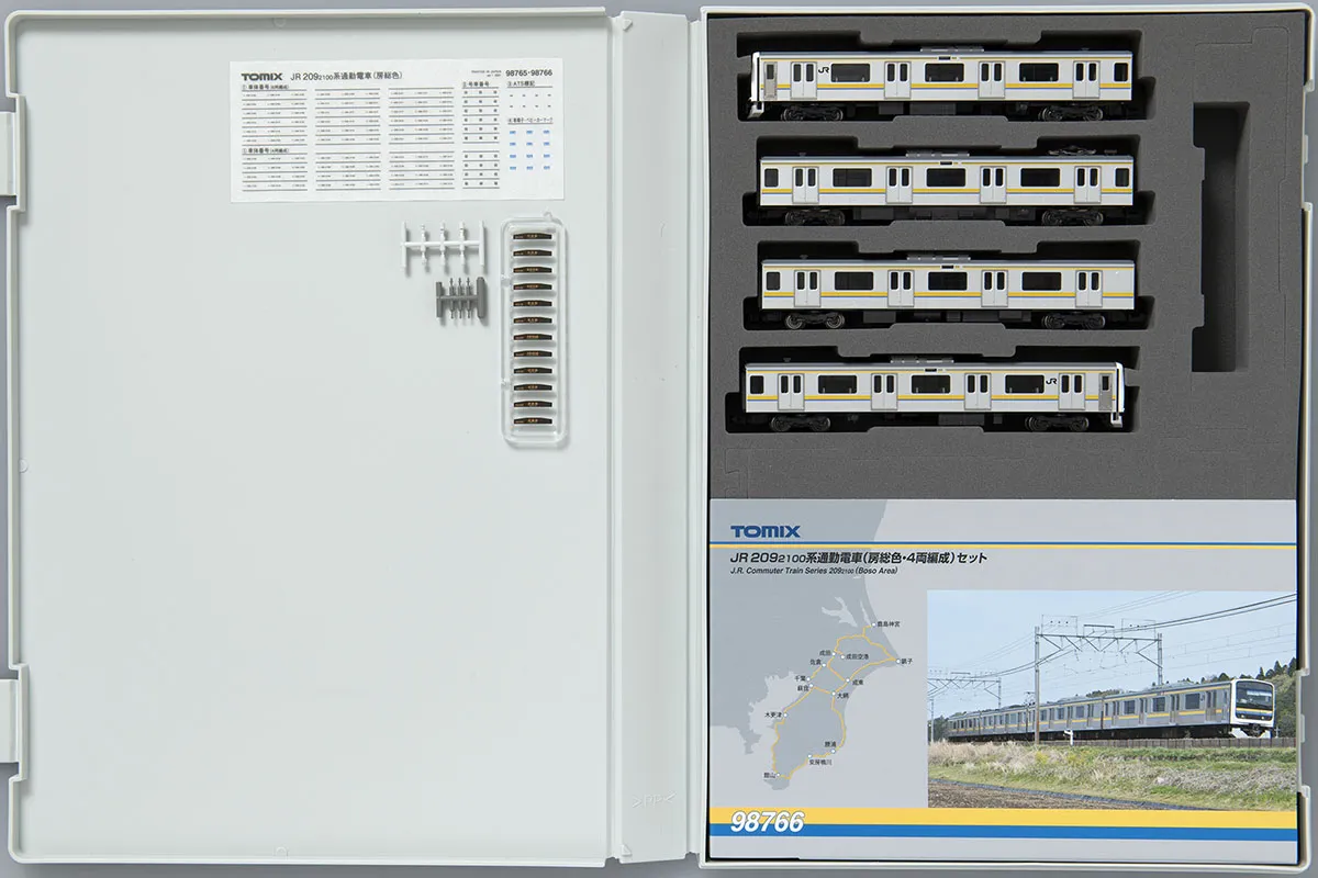 The 209-2100 series is a commuter train that began operation in 2009 to replace the 113 and 211 series that were in operation in the Boso region. All carriages have been repurposed from carriages that were in operation on other lines, with semi-cross seats in the front cars and toilets in the middle cars. There are 6-car and 4-car formations, and until March 2021, these were operated as 10-car formations, each coupled together.