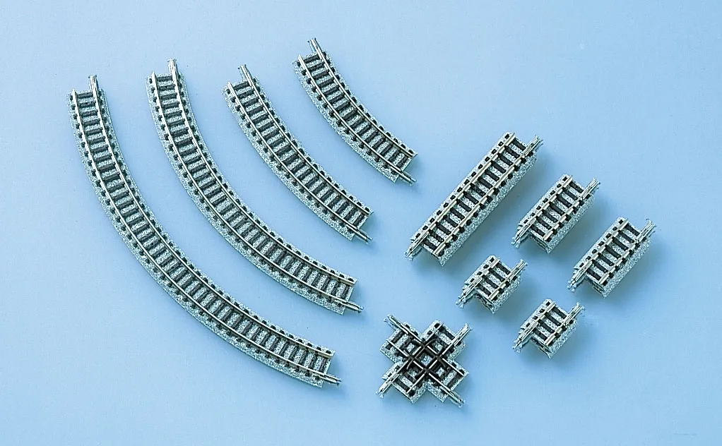 A set for crossing rails on a flat surface. You can enjoy a variety of layout patterns by combining and developing other sets.