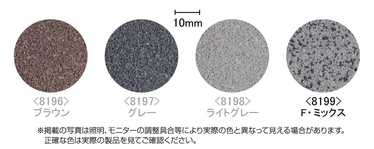 This ballast is a mixture of dark and light gray to match Finetrack's ballast color. Features - A realistic matte ballast. - <8100> Scenery Bond is useful for fixing the ballast. - Contents: Approx. 170g
