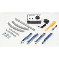 N Starter Set E7 Kagayaki by Tomix delivers a complete N scale high-speed train experience for realistic railway modelling and layout expansion. Featuring: Detail & Finish: Accurately modelled E7 Series Kagayaki Shinkansen cars with printed symbol marks, Gran Class markings, car number markings on the bodies and roofs, and movable canopy and pantograph details reflecting the prototype. Drive & Performance: The powered car uses an M‑13 motor with a flywheel, new current collection system and silver wheels to support smooth train operation. Control & Compatibility: Includes the PU‑N600 DC power unit with feeder for analogue control as part of the starter set. Couplings & Integration: Uses hook‑and‑U‑shaped conductive couplers for integration with other compatible Tomix Shinkansen add‑on sets and rolling stock. Model Dimensions (Approximate): Scale: N scale Gauge: 9 mm N gauge Technical Specifications: Brand: Tomix Model Type: Passenger Train Starter Set Era / Prototype: Modern Japanese high-speed rail service (E7 Series Hokuriku/Joetsu Shinkansen) Control System: DC analogue (included PU‑N600 controller) Assembly: Ready-to-run Included: Four E7 Series cars (including one motor car), PU‑N600 power unit with feeder, straight and curved rails forming an oval Basic Rail Pattern A, and a relayer rail. Ideal for N scale beginners building a complete first layout, collectors of Japanese high-speed train models, and operators looking for a complete analogue train and track package seeking accurate scale appearance and reliable operation. Why this model matters This starter set provides everything needed to begin model railroading - a powered E7 Kagayaki train, controller, and a basic oval of track - making it a strong choice for first-time hobbyists or those expanding an existing N gauge layout. The detailed Shinkansen cars and included power equipment support both display quality and practical operation. How to use it Lay out the included rails to form the basic oval and connect the power unit’s feeder to the track. Place the assembled four-car E7 Kagayaki train on the rails and use the PU‑N600 controller to operate forwards and backwards. Keep the rails and wheelsets clean for the best electrical pickup and smooth running, and store components carefully when not in use.