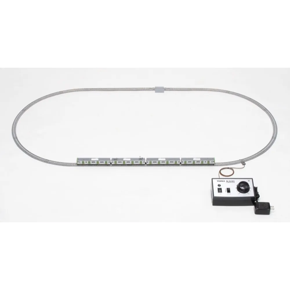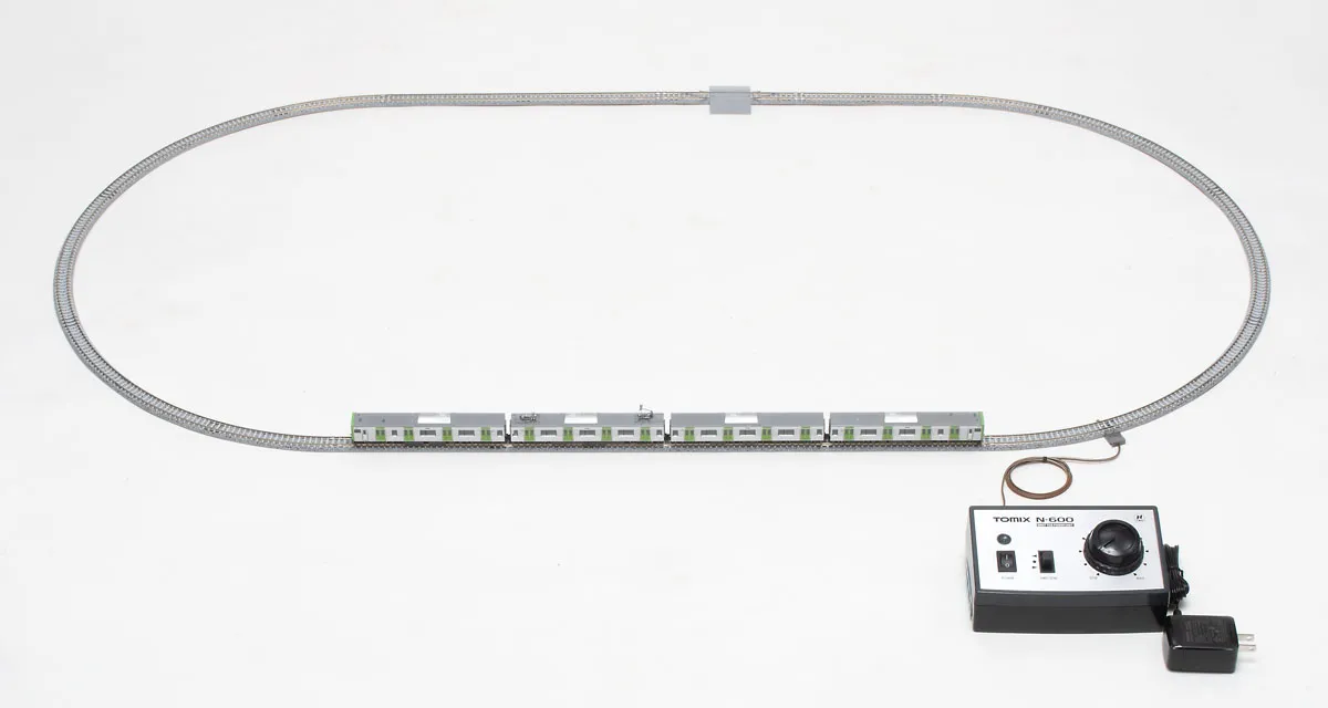 This complete set includes the E235 Yamanote Line, power unit PU-N600, and rails, making it the perfect introduction to model trains that you can enjoy right away. It comes in a compact package that is easy to store. Features Vehicles - Reproduces the later model of the E235-0 series with thinner roof beads. *Vehicle specifications are based on the <98525>E235-0 series train (late model, Yamanote Line) basic set. - A full 11-car formation can be reproduced with this product, <98526>Add-on Set A, and <98527>Add-on Set B. - The distinctive door line color is reproduced by printing. - Car number printed. - JR mark printed. - Side glass reproduces green glass. - Head and tail lights and front display unit are equipped with a constant lighting board. - Head and tail lights and front display unit are lit by white LEDs. - Front display unit is equipped with a printed part "Yamanote Line". - Only the driver's cab side of the leading car is equipped with a dummy coupler. - Uses a power source with a flywheel. - Uses a new current collection system and black wheels. - Uses M-13 motor Control equipment - PU-N600 (dark gray specification) Rails - Uses easy-to-use Finetrack rails that reproduce PC sleepers - Simple and reliable connection - Rail layout is the most basic rail pattern A (oval type) - Comes with relayer rails Contents Vehicles - Kuha E235-45 - Moha E235-134 (with motor) - Moha E234-134 - Kuha E234-45 Control equipment - Power unit PU-N600 - DC feeder Rails - Straight rail S140-PC (F) - Straight rail S280-PC (F) - Relayer rail S140-RE-PC (F) - Curved rail C280-45-PC (F) Layout supplies - Relayer