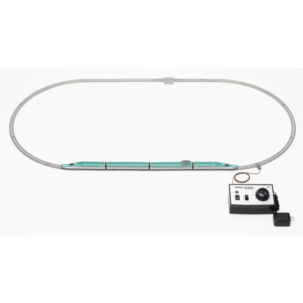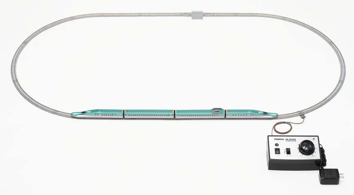 This complete set includes the Tohoku Shinkansen E5 Series, the power unit PU N-600, and rails, making it the perfect introduction to model railways that you can enjoy right away. It comes in a compact package that is easy to store. Features - The rail arrangement is rail pattern A, the same as the conventional SD set - Set of 4 basic E5 series Hayabusa cars - Set of PU N-600 control equipment Vehicles - The movable hood reproduces the black outer hood adopted from the U28 formation onwards - The anti-slip roof is reproduced with gray printing - The "Treasureland TOHOKU-JAPAN" logo mark affixed to the side of cars 1 and 10 is reproduced with printing - Hayabusa logo mark, Gran Class mark, car number, and car number are printed - Uses hook and U-shaped conductive coupler - Uses power with flywheel - Uses new current collection system and silver wheels - Uses M-13 motor - E523-42 - E526-342 - E525-142 (with motor) - E514-42 Rails - Reproduces PC sleepers - Uses fine track - Contents of rail pattern A - With relay rail - Straight rail S140-PC (F) x 1 - Straight rail S280-PC (F) x 3 - Relayer rail S140-RE-PC (F) x 1 - Curved rail C280-45-PC (F) x 8 Accessories - Startup guide - Instruction manual - Runner parts: Slope and spacer parts - Parts: Powered trolley mounting auxiliary rod - AC adapter