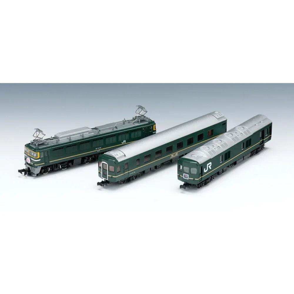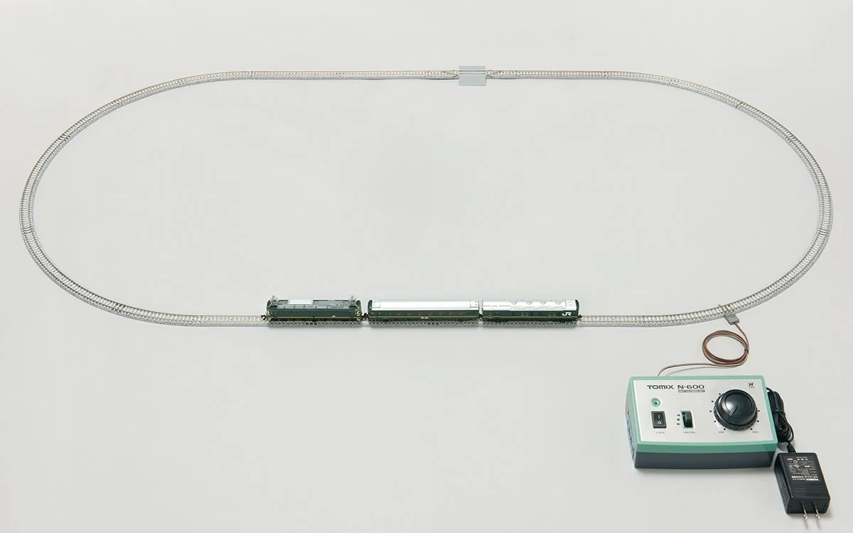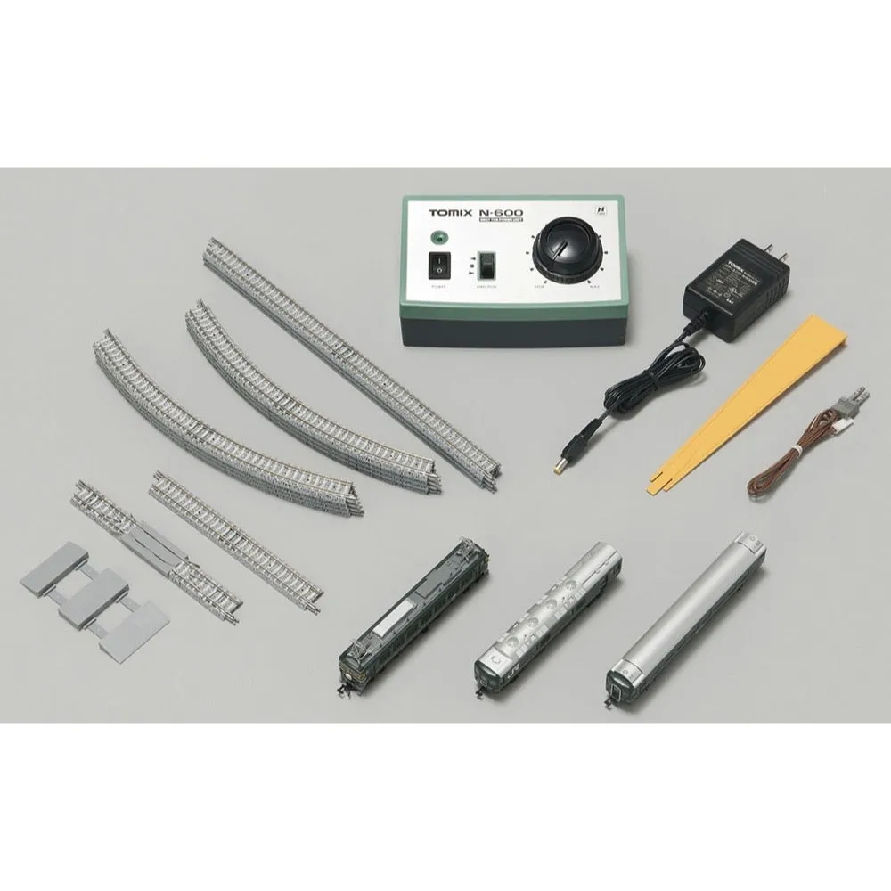 This set includes the sleeper express "Twilight Express", the power unit PU-N600, and rails, making it the perfect introduction to model railways that you can enjoy right away. It comes in a compact package that is easy to store. Vehicles - Set containing the sleeper express "Twilight Express" - *The main specifications of the vehicles are based on <92459> JR EF81/24 Series Twilight - Express Basic Set - 3-car set including EF81, Ohanfu 25-500, and Kani 24 - Combine this set with Add-on Sets A and B to recreate a full 11-car formation - Logo and JR mark printed - Car numbers printed on Ohanfu and Kani 24 - Equipped with a flywheel-equipped motor (EF81) - New current collection system, black wheels (passenger car) - EF81 (Twilight) - Ohanfu 25-501 - Kani 24-13 Control equipment - PU-N600 (green version) - DC feeder Rails - Uses easy-to-use Finetrack rails that replicate PC sleepers - Simple and reliable connections - Rail layout is the most basic rail pattern A (oval type) - Relayer rail included - Straight rail S140-PC (F) - Straight rail S280-PC (F) - Relayer rail S140-RE-PC (F) - Curved rail C280-45-PC (F) Accessories - Startup guide - Instruction manual - Runner parts: printed head mark - Runner parts: number plate, maker's plate - Runner parts: whistle, signal flare - Runner parts: slope and spacer parts - AC adapter