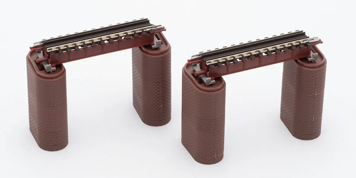 Tomix N Truck Deck Girder Bridge S70 x 2 w/4 brick piers/red