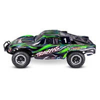 Features Clipless Short Course Body - Tough front and rear tube-style bumpers - Body reinforcements to prevent pull-through damage - Holds tight for intense action - Quick and easy removal - Smooth appearance with no body posts or clips Extreme Heavy Duty Upgrade Kit Installed - Strengthened C-hubs, axle carriers, steering blocks, and shock towers - Maxx-duty® driveshafts - Oversize diameter - 6 mm axles - Steel wheel hexes TQi™ 2.4 GHz High Output Transmitter - TQi 2-channel transmitter - All-day comfort with precise long-range control - Automatically stores and loads settings for up to 30 Traxxas Link-enabled models - Programmable multi-function knob - Adjustable steering and throttle percentage (dual rates) - Adjustable steering and throttle sensitivity (exponential) - Adjustable steering and throttle end points - 5-channel micro receiver (6533) with fail-safe security - Patented waterproof receiver box with easy-access plug Velineon® VXL-3s™ Waterproof Electronic Speed Control - Three Programmable Drive Profiles - Sport Mode - Forward / Brake / Reverse - Race Mode - Forward / Brake - Training Mode™ - 50% Forward / Brake / 50% Reverse (patented) - Heat sink accepts accessory cooling fan (3340) - Traxxas EZ-Set® one-button setup - Built-in two-stage low-voltage det
