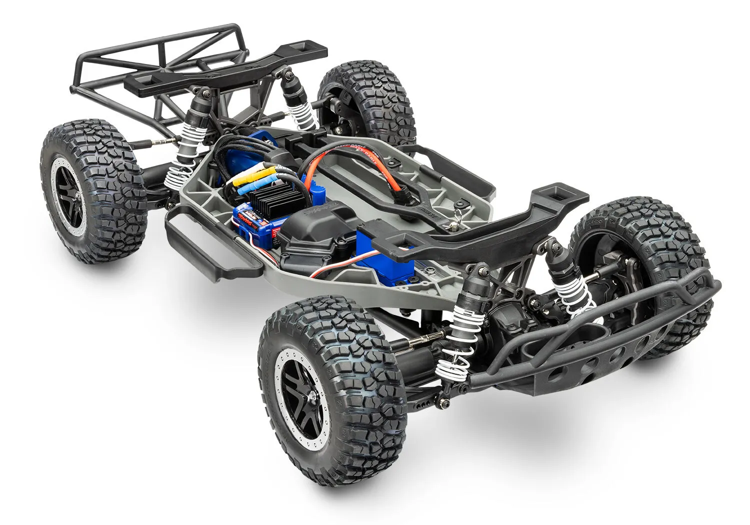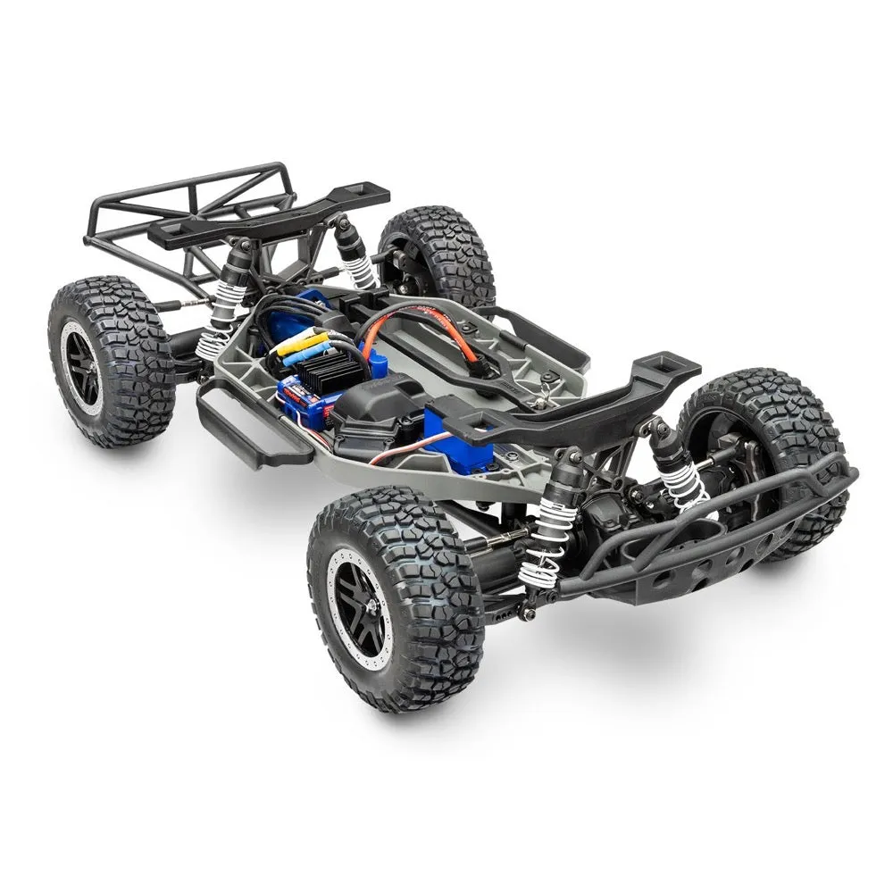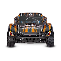 Features Clipless Short Course Body - Tough front and rear tube-style bumpers - Body reinforcements to prevent pull-through damage - Holds tight for intense action - Quick and easy removal - Smooth appearance with no body posts or clips Extreme Heavy Duty Upgrade Kit Installed - Strengthened C-hubs, axle carriers, steering blocks, and shock towers - Maxx-duty® driveshafts - Oversize diameter - 6 mm axles - Steel wheel hexes TQi™ 2.4 GHz High Output Transmitter - TQi 2-channel transmitter - All-day comfort with precise long-range control - Automatically stores and loads settings for up to 30 Traxxas Link-enabled models - Programmable multi-function knob - Adjustable steering and throttle percentage (dual rates) - Adjustable steering and throttle sensitivity (exponential) - Adjustable steering and throttle end points - 5-channel micro receiver (6533) with fail-safe security - Patented waterproof receiver box with easy-access plug Velineon® VXL-3s™ Waterproof Electronic Speed Control - Three Programmable Drive Profiles - Sport Mode - Forward / Brake / Reverse - Race Mode - Forward / Brake - Training Mode™ - 50% Forward / Brake / 50% Reverse (patented) - Heat sink accepts accessory cooling fan (3340) - Traxxas EZ-Set® one-button setup - Built-in two-stage low-voltage det