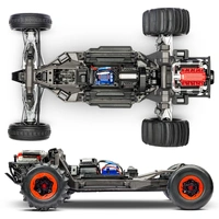 - New 2WD X- Series Chassis - A new low centre of gravity chassis was engineered with focused development on even more strength and resistance to flex. a thick reinforcing brace unifies the fron bulkhead and chassis into one cohesive structure for increadible strength and impact resillience. The rear bulkhead was redesigned to accomodate the ultra-heavy-duty transmission and differential.