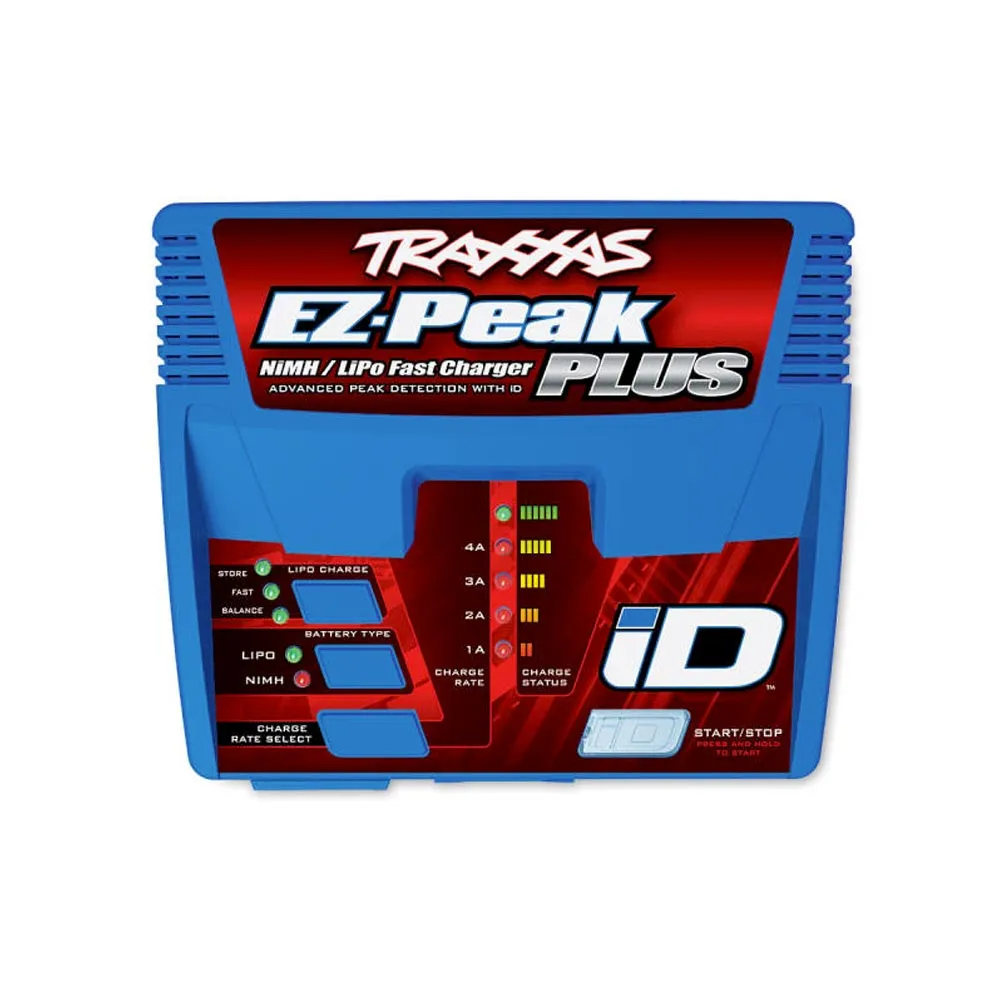 The Traxxas iD™ battery system is the easiest and safest way to charge your Traxxas batteries. The EZ-Peak® Plus recognizes Traxxas iD batteries and in an instant automatically configures and optimizes the charger settings. There's no need to be a battery expert or learn how to navigate complex menus. Just plug in a Traxxas iD battery and EZ-Peak Plus (#2970) does all the work for you. The integrated balance connector on Traxxas LiPo iD batteries eliminates fragile balance wires and connectors, along with the need for external balance boards. At the press of a button, the EZ-Peak Plus' Storage Mode protects your LiPo battery investment by safely preparing the batteries for extended storage. 4-amp fast charging and advanced high-resolution peak detection deliver a perfect charge every time. The EZ-Peak Plus is backed by the Traxxas Lifetime Electronics Warranty for years of reliable service.