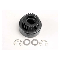 Clutch bell, (22-tooth)/ 5x8x0.5mm fiber washer (2)/ 5mm E-clip (requires #4611-ball bearings, 5x11x4mm (2)). Traxxas clutch bells are made from durable steel for long-lasting performance. Available in a variety of sizes to fine tune your truck's gear ratios.