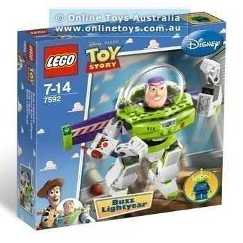 To infinity…and beyond! Blast off for interstellar adventures with a buildable, poseable Buzz Lightyear! The fearless Space Ranger is ready to battle the Evil Emperor Zurg with the help of his winged jetpack, closable visor and arm-mounted, flick-launching laser cannon…not to mention his little green alien friend! Evil galactic overlords don’t stand a chance! Includes alien minifigure. • Flick fire Buzz’s laser cannon! • Retractable helmet protects Buzz in outer space! • Move the wings on Buzz’s jetpack! • Measures over 7″ (18cm) tall! Wingspan measures 7″ (18cm) wide! • Ages 7+.