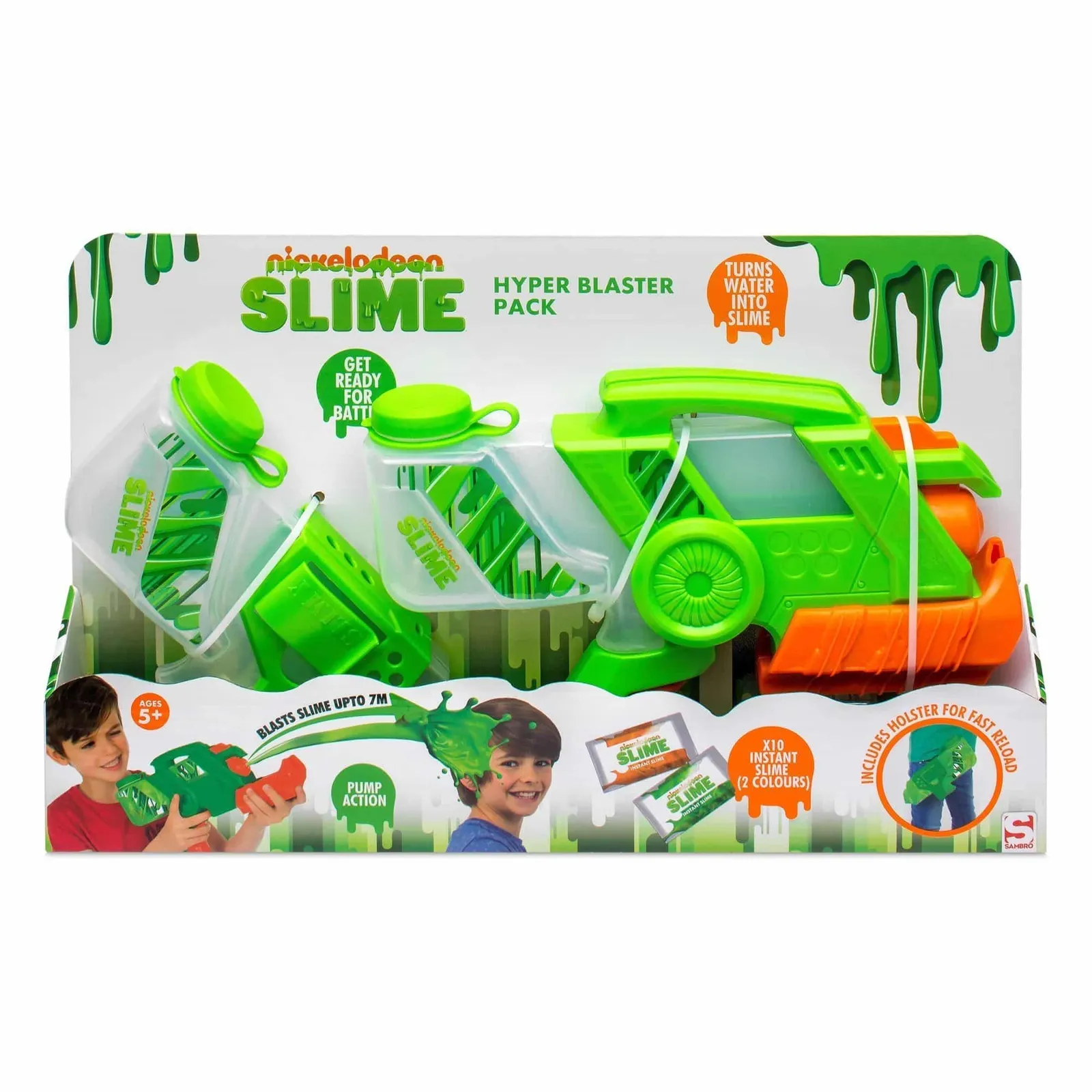 Features: • Shoot slime with the pump action Slime Hyper Blaster • Blast slime up to 7 meters • Includes Slime Hyper Blaster, 10 packs of slime and a holster for fast reloads! Suitable for ages 5 years+