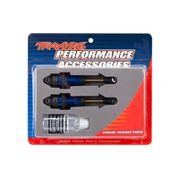Traxxas Complete GTR Long Shocks feature blue anodized bodies with TiN shafts. These shocks are fully assembled and ready for oil, and are compatible with the Hoss, Slash 4X4 and Rustler 4X4 models. Package includes two shocks, and shock oil, but does not include shock springs.