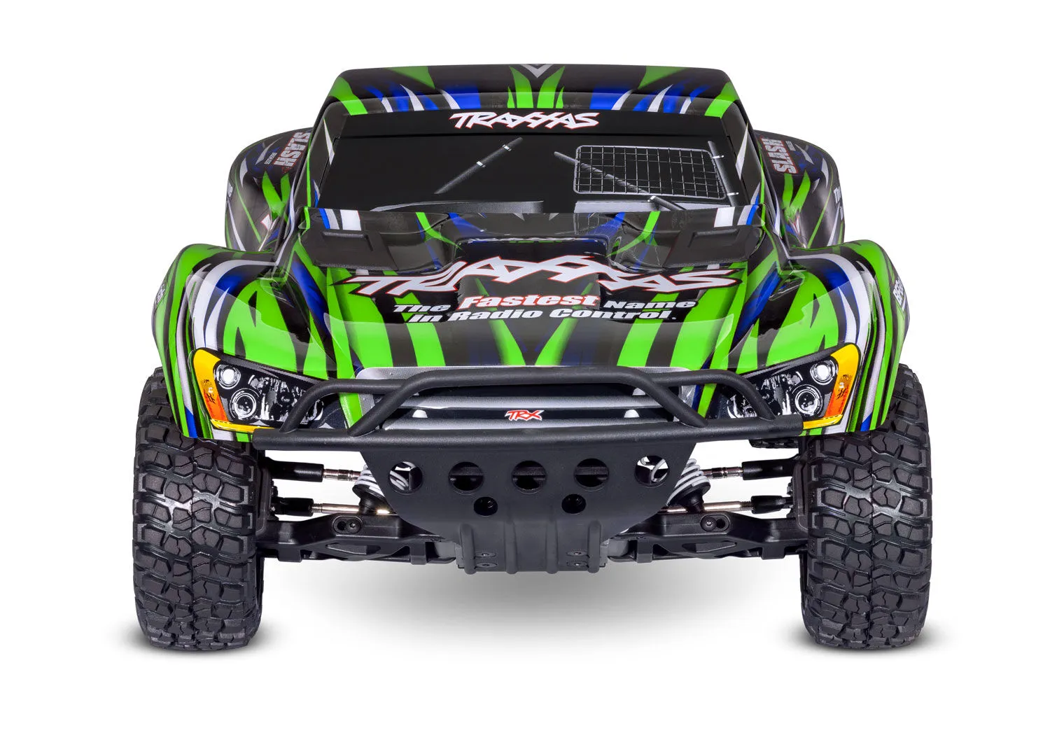 Traxxas Slash® puts you in the drivers seat for intense fender-to-fender short course racing action at the track, or in your own backyard. Slashs BL-2s brushless power system delivers effortless power for all-day fun with a more responsive throttle and powerful acceleration. New Extreme Heavy Duty Upgrade parts allow Slash to take brutal punishment in stride. Slash's fully adjustable track-ready suspension delivers most authentic short course racing experience possible.
