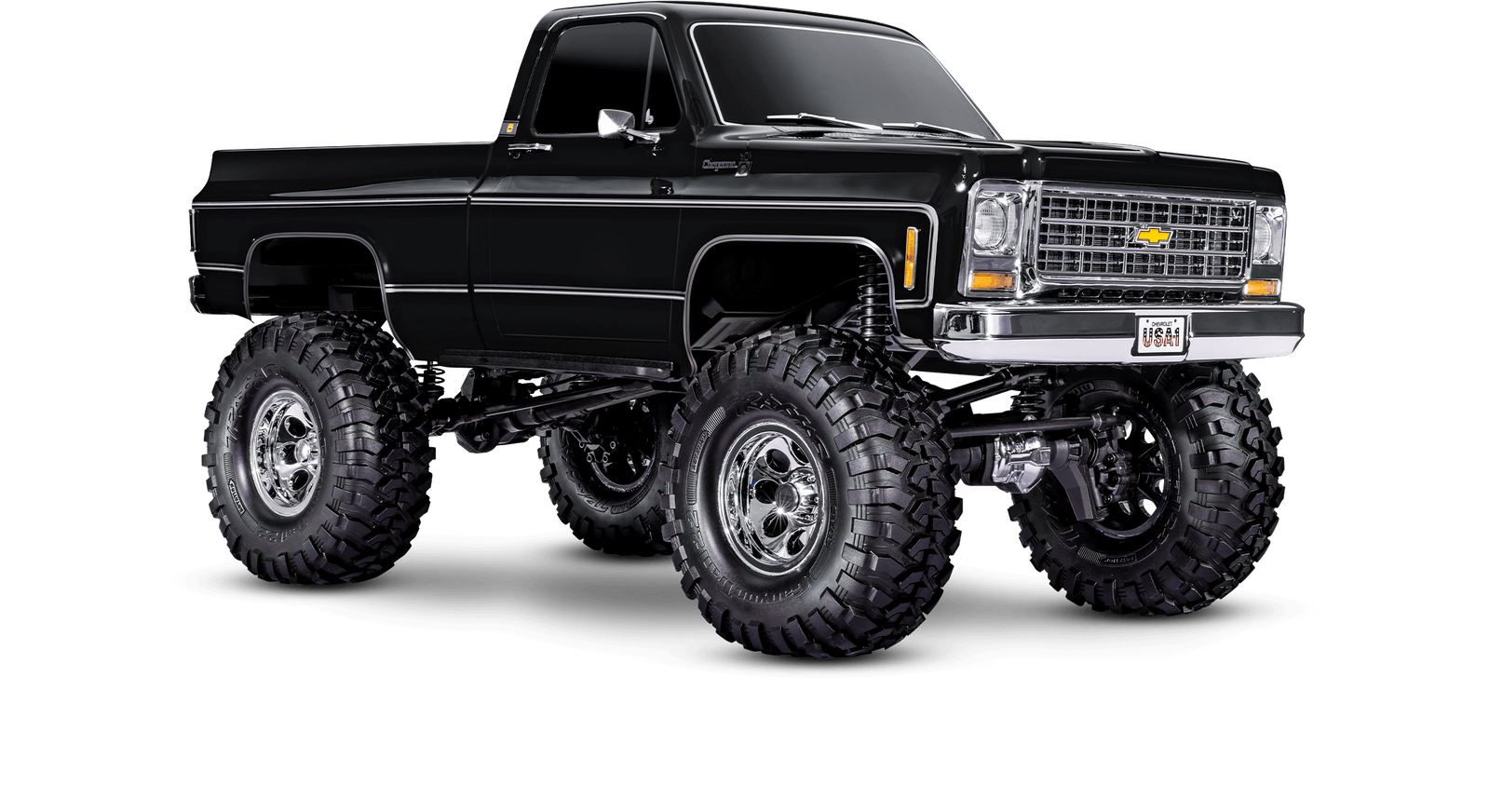 Traxxas elevates scale adventure with the lifted TRX-4® Chevrolet® K10 High Trail Edition. Thanks to its factory-installed Long Arm Lift Kit and oversize tires, the highly detailed K10 replica body stands over an inch taller than our standard TRX-4. The K10’s extended wheelbase further enhances the TRX-4’s already legendary off-road capability for even more fun on the trail. The TRX-4 High Trail Edition is the perfect vehicle for the driver who wants it all: extreme all-terrain capability, stunning scale looks, and Traxxas-Tough™ durability.
