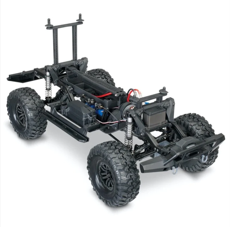 | Battery | Compartment had a hinged battery strap allowing for quick and easy battery access Two speed transmission has high/low range with remote shifting Steering features Superior 45° steering angle Front Suspension - 3 link with panhard Rear Suspension - Triangulated 4 link Aluminium GTS Shocks 1.9" Canyon Trail tyres with trail-tuned foam inserts TQiT 2.4GHz 4-channel transmitter Telemetry ready #6533 5-channel micro receiver with failsafe Patented O-Ring sealed watertight receiver box keeps the micro receiver dry Sealed Ball Bearings Hex hardware with rust-resistant black oxide coating |