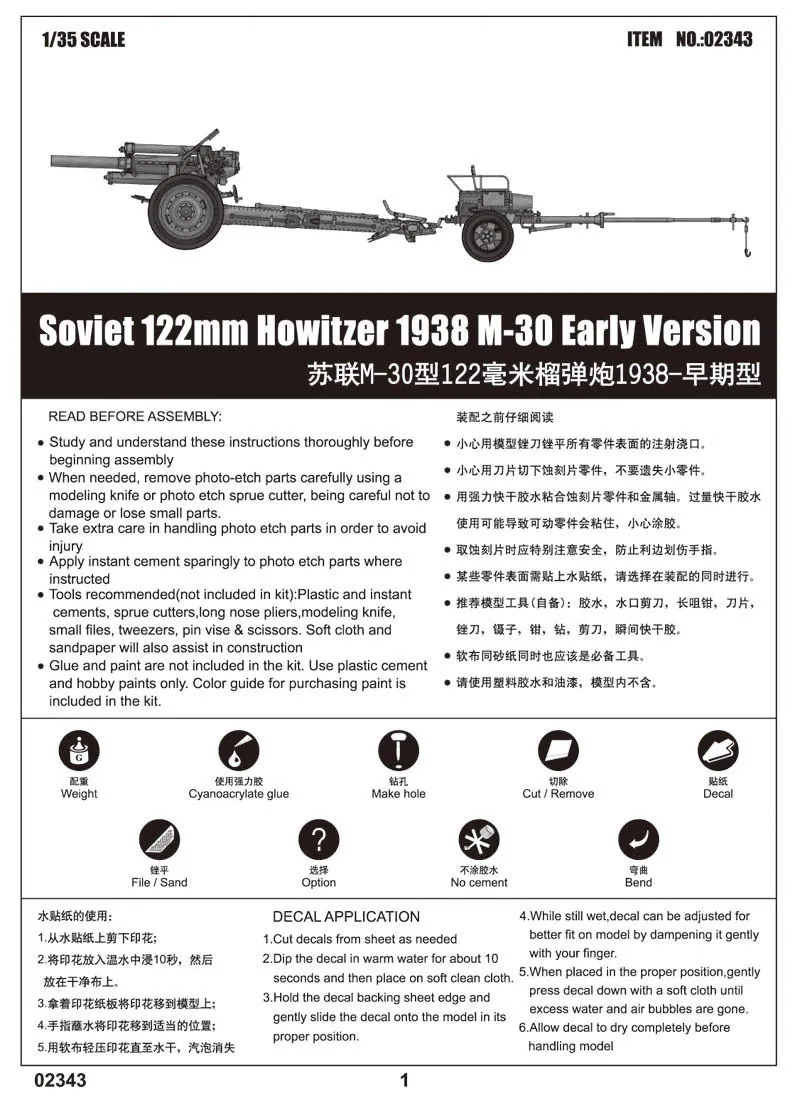 Trumpeter 02343 1/35 Soviet 122mm Howitzer 1938 M-30 Early Version Plastic Model Kit