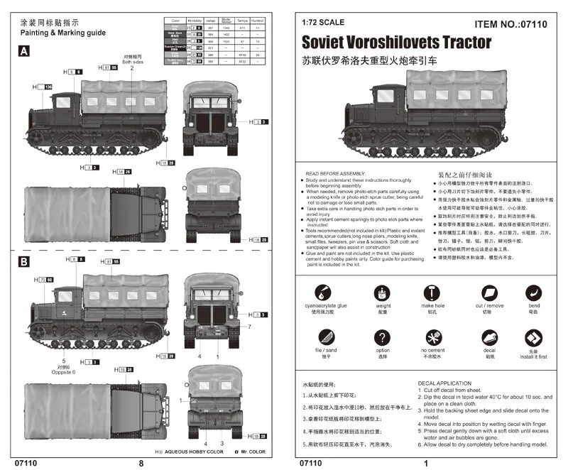 Trumpeter 07110 1/72 Soviet Voroshilovets Tractor