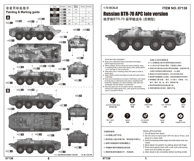 Trumpeter 07138 1/72 Russian BTR-70 APC late version
