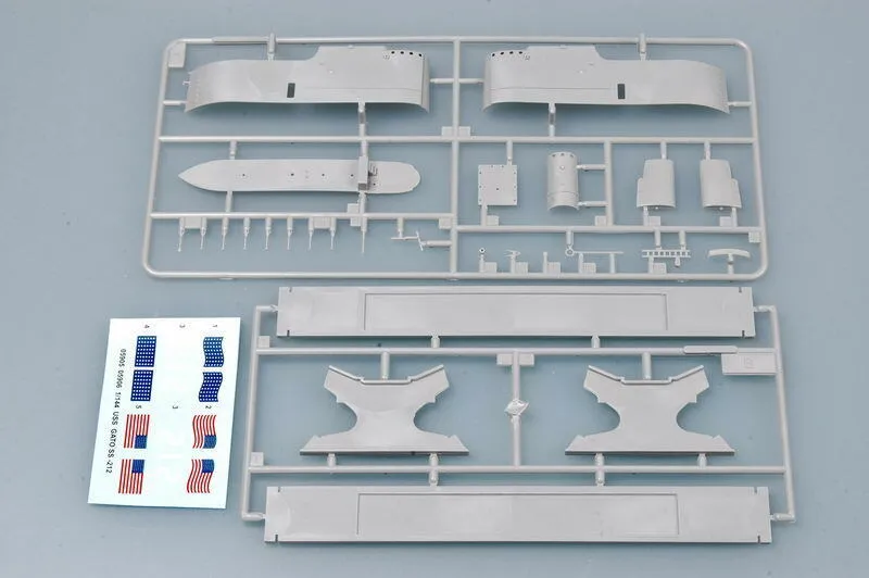 Description This is an injection-plastic ship model kit. Gato-class submarines were the state of the art in American sub design at the start of World War II. Based on the previous Tambor-class submarines, the Gato class incorporated improvements that increased their overall patrolling and combat abilities. Modifications to the diesel engines and batteries increased patrol duration over that of the Tambors, and internal alterations provided more comfort for the crew. The class is named after its lead ship, the USS Gato (SS-212), as depicted in this new kit from Trumpeter. Trumpeter's second 1/144-scale Gato release is again a large kit, measuring 66cm long (about 26 inches) from stem to stern. Sharp molding and fine detail highlight this kit, molded in light gray styrene. Construction is broken down into the internal pressure hulls, outer hull, conning tower, and outer hull and deck details, of which there are plenty! This release depicts the Gato as it appeared in 1941, featuring a different conning tower arrangement than the 1944 version depicted in the previous release. A fine kit of an iconic submarine.