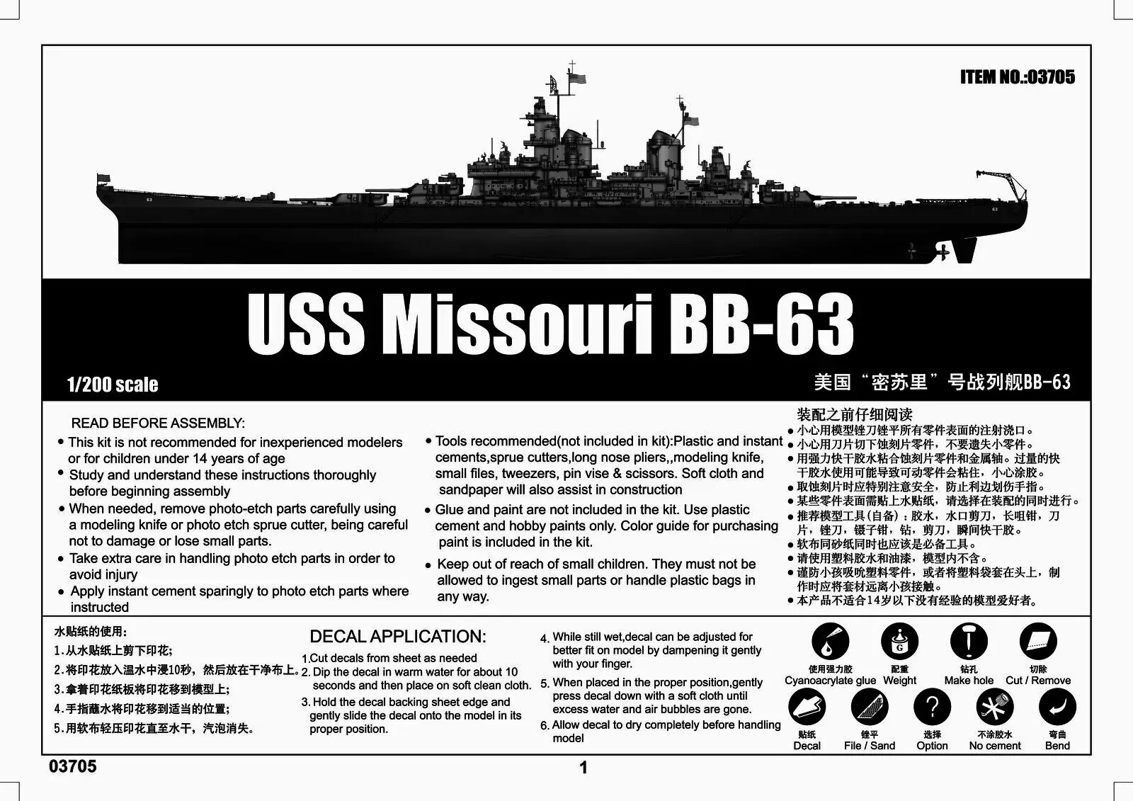 Trumpeter 1/200 USS Missouri BB-63 Plastic Model Kit [03705]