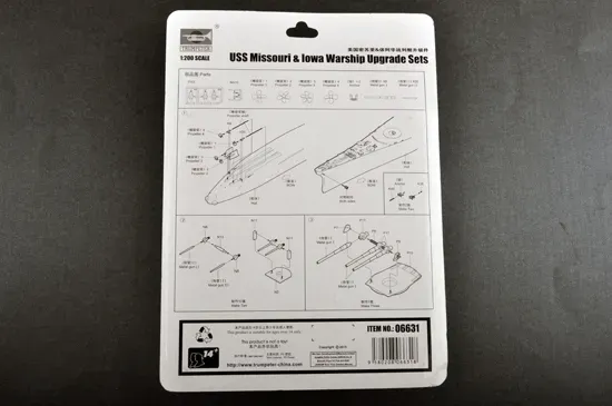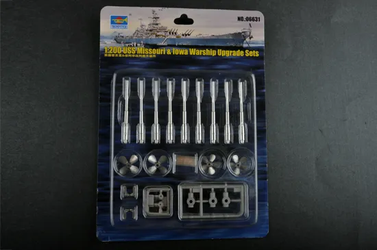 SKU: TR06631 | Brand: Trumpeter | Product: Trumpeter 1/200 USS Missouri & Iowa Warship Upgrade Set Trumpeter 1/200 scale upgrade set for USS Missouri and Iowa battleships (static armor models). Contains 60+ parts across 13 sprues including metal-cast components: gun barrels, anchor, and propeller. Enhances detail on existing Iowa and Missouri class models. Assembly required; paints and adhesives sold separately.