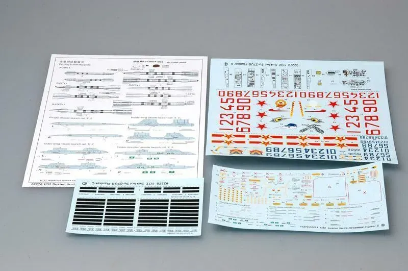 Description This is an injection-plastic jet aircraft model kit. Trumpeter continues their giant 1/32 modern jet series with the Family Flanker! This release is highly detailed inside and out. Not to mention massive, at around 70cm (27.5 inches) long, with a 46cm (18 inch) wingspan! Photo-etched and white metal parts are included. Both cockpits are highly detailed, the control surfaces are hinged, full missile armament is provided, and the airbrake is posable. Decals are given for one Russian and one Chinese aircraft.