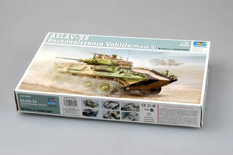 **SKU: TR00392 | Brand: Trumpeter | Product: Trumpeter 1/35 ASLAV-25(Reconnaissance) Plastic Model Kit [00392]*Aust Decals** The ASLAV is a modern family of eight-wheeled armored vehicles developed by Australia for multiple operational roles. Early prototypes emerged in the 1990s, with full production spanning 1995–2007 and yielding 257 vehicles total. These vehicles derive their architecture from the MOWAG Piranha 8x8 platform and feature exceptional mobility and amphibious capabilities. The ASLAV-25 reconnaissance variant carries a three-person crew plus six additional troops and mounts a 25mm Bushmaster M242 autocannon and dual 7.62mm machine guns. Power comes from a single Detroit Diesel 6V53T engine rated at 279 HP. The broader ASLAV family includes the ASLAV-PC armored personnel carrier, which accommodates up to seven personnel and is equipped with a 12.7mm machine gun, frequently retrofitted with a 40mm automatic grenade launcher. ---