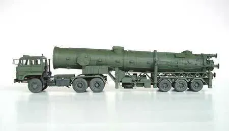 Description This is an injection-plastic military vehicle model kit. The DF-21 is the PLC 's medium-range (1800km) ballistic missile, nuke-capable(200-300kt), now in use. It was originally developed as an SRBM then redeveloped asa land-based MRBM. The weapon system consists of a sealed missile cannister, tractor and transporter-erector-launcher (TEL) vehicle. Trumpeter presents the PLC's latest weapon of mass destruction in 1/35 scale. Please do not worry; radioactive material is not included (joke!). The kit itself is basically a highly detailed automobile model with the engine and transmission. There are numerous parts (808 plastic, 24 rubber tyres and PE set). Completed model will be 460.5mm (18 in.) long. No figure included.