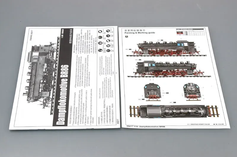 Description In WWII the Germans modified many freight and passenger locomotives for use in transporting troops and armor across the battlefield. Heavy steel plates were affixed to both sides of the locomotives to protect them from enemy attack, as these were slower moving transports and easy targets. The BR86 was a heavy steamer with a 2-8-2 wheel arrangement and could pull numerous transport vehicles. Kit consists of 634 parts on 18 sprues, plus four vinyl pipes, photo etched part and clear parts. Includes full cab interior detail, drive assembly, chassis and boiler. View All Close
