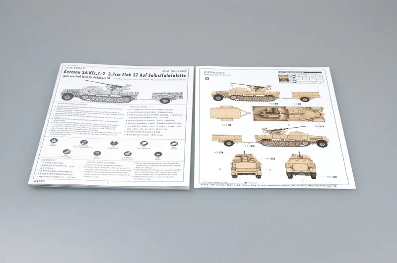 Trumpeter 1/35 German 3.7cm Flak 37 auf Selbstfahrlafette (Sd.Kfz.7/2 late version) Plastic Model Kit 01526