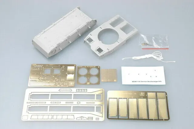 Description In April 1940, the Germans converted some Panzer IVc and Panzer IVd tanks to bridgelayers to be used primarily in France and Belgium to forge the many rivers over which previous bridges had been destroyed. These were designated Panzer IVb and a total of about 20 were produced. The bridge sections were about 29 feet long each. The Germans designated a specific platoon to operate these bridgelayers. Kit consists of 778 parts on 21 sprues plus a hull, tracks, photo etched parts and markings for the German Army. The bridge sections are movable, and the kit can be built with the bridge section atop the tank or in the bridge-building mode. View All Close
