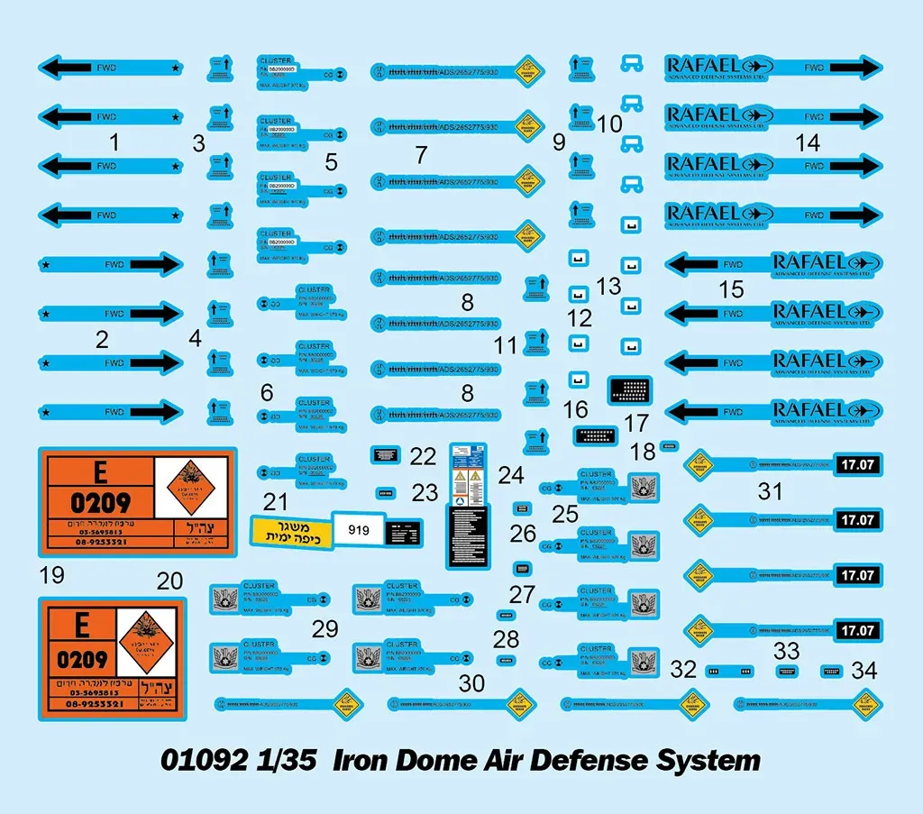 Israeli Iron Dome Air Defence System. _x000D__x000D_ Mobile all-weather air defence system deployed by Israeli Defence Force (IDF), Israeli Air Force (IAF) and the US Army (2 batteries in 2021). _x000D__x000D_ 11 sprues, L: 223mm, W: 118mm, Total parts 320+. _x000D__x000D_ 1:35 scale plastic model kit from Trumpeter, requires paint and glue.