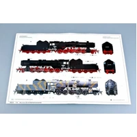 Description This giant locomotive was used for, among other purposes, hauling the Leopold and Karl guns to firing positions during the war. As a prime target of the allies, it was constructed with heavily armored side plates to protect its boiler, engineer and machinery. This gigantic kit will make an impressive display when attached to the Karl or Leopold kits, sold separately. Kit consists of 710 parts on 27 sprues, a photo etched part and markings for the WWII German Army. Completed kit (without the guns it pulls) is 35" long and over 5" high. View All Close