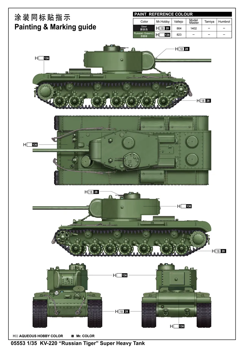 Trumpeter 1/35 KV-220 Russian Tiger Super Heavy Tank 05553 Plastic Model Kit