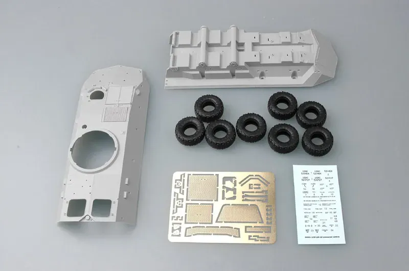 Total Sprues : 10 sprues, lower hull, upper hull and 5 section road beds
