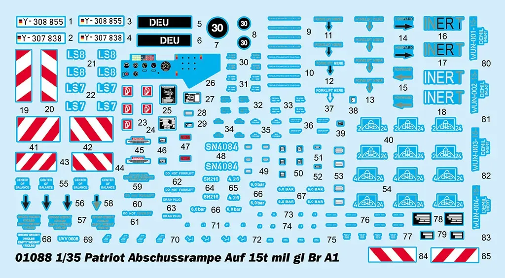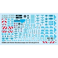 German Patriot Abschussrampe Auf 15t mil gl Br A1. _x000D__x000D_ Transportable missile launch pad on German MAN 27.365VFAE KAT-1A1 8-wheel drive chassis. _x000D__x000D_ 21 sprues, cab & tyres, photo-etch parts Optional transport or launch position Missile included L: 306.9mm, W: 92.1mm, Total parts 810+ 1:35 scale plastic model kit from Trumpeter, requires paint and glue