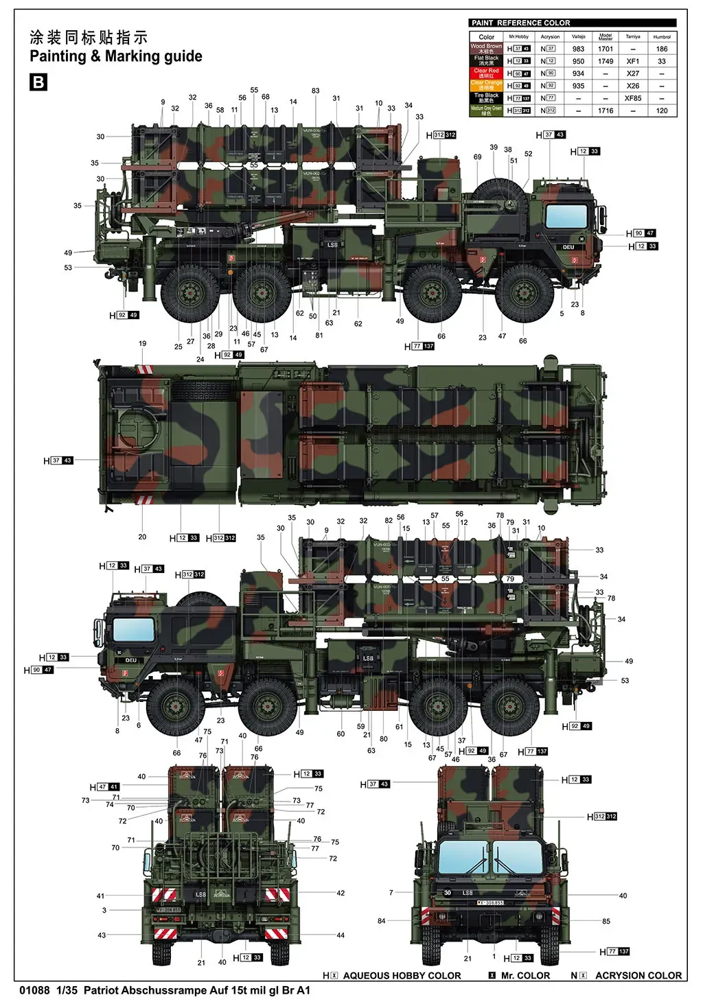 Trumpeter 1/35 Patriot Abschussrampe auf 15t mil gl Br A1 Plastic Model Kit