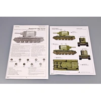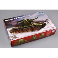 1/35 Russian KV Big Turret Tank by Trumpeter delivers a highly detailed and accurate model of this early-war Soviet heavy tank for military history enthusiasts and experienced scale modelers . Featuring: Accurate Details: Captures the specific features of the KV heavy tank with the large turret. Finely Moulded Parts: Provides crisp details and accurate representation. Heavy Armour: Replicates the thick armour plating of the KV tank. Finished Model Dimensions (Approximate): Length: 19.7 cm Width: 9.5 cm Height: 8.3 cm Technical Specifications: Scale: 1/35 Manufacturer: Trumpeter Model: Russian KV Big Turret Tank Parts count: 400+ Material: Injection-moulded plastic Assembly: Required Paint/Glue: Required (not included) Recommended Age: 14+ Track Type: Individual links Figures Included: No Perfect for: Building a WWII Soviet armour collection, creating diorama scenes depicting the Eastern Front, and enjoying a challenging modelling project. Why this kit matters The KV-1 was a Soviet heavy tank of World War II. Named after the Soviet defense commissar Kliment Voroshilov, the KV series was known for its heavy armour protection during the early years of the war. The "big turret" variants featured improved firepower. This model kit allows enthusiasts to build a detailed replica of this iconic early-war tank. Its accurate details and comprehensive parts breakdown provide a rewarding modelling experience. How to use it Build using paint and glue. Display proudly once finished, at home or in your collection cabinet. This is a plastic model kit. Assembly, paint, and glue are required. It is not a toy.
